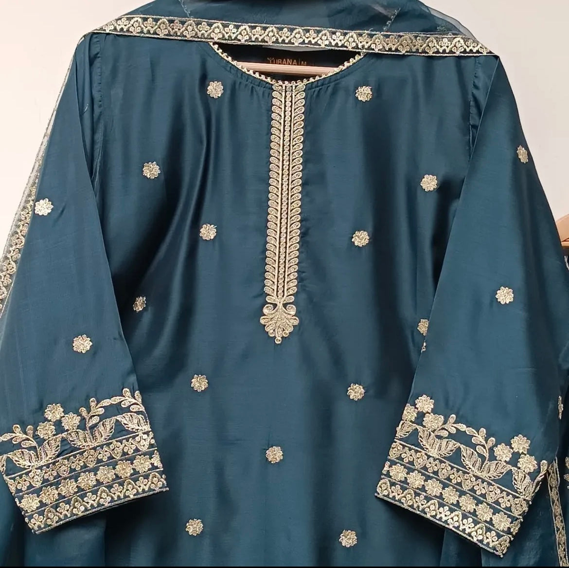 Afroz Three Piece - Premium Shamoz Silk Collection
