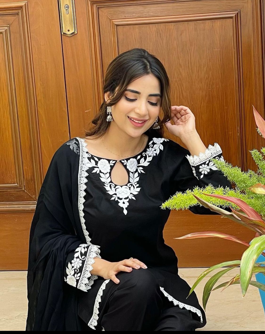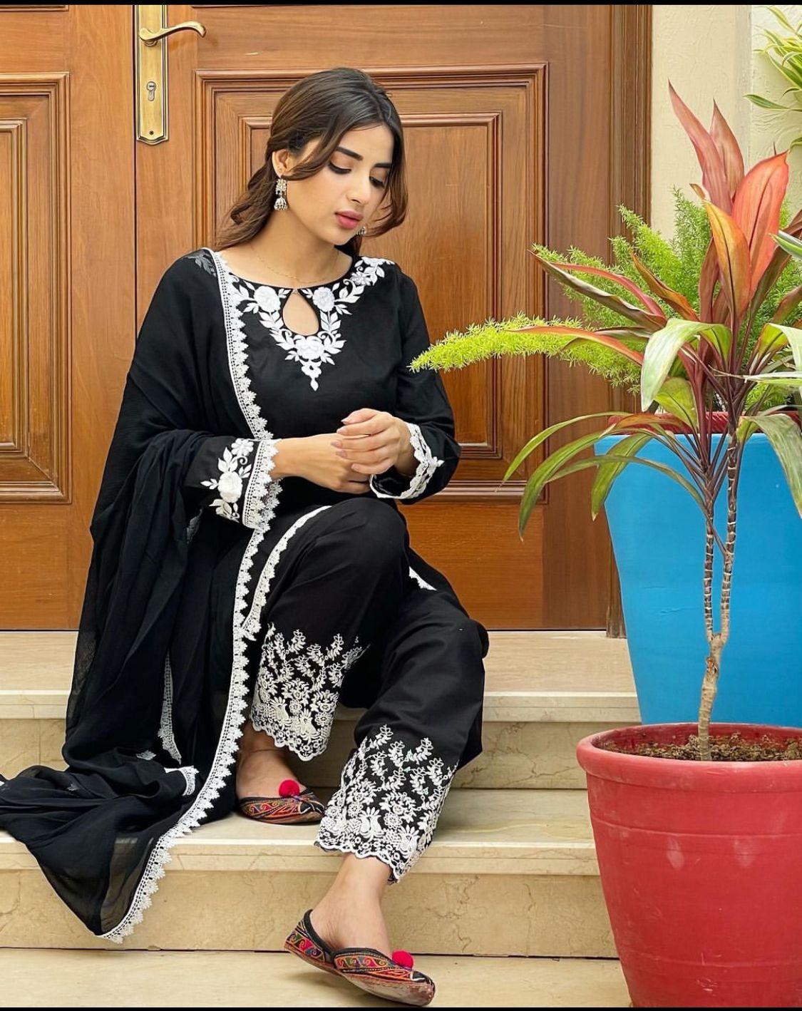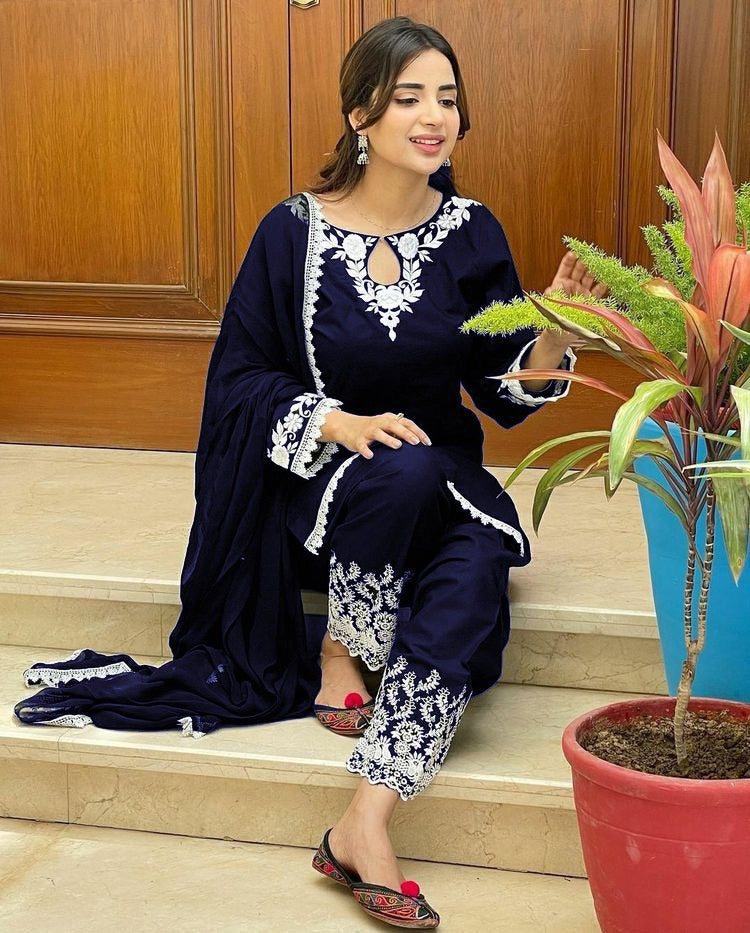 Product Detail:- A 3pcs neck embroidery shirt, with sleeves patches and lace work all borders