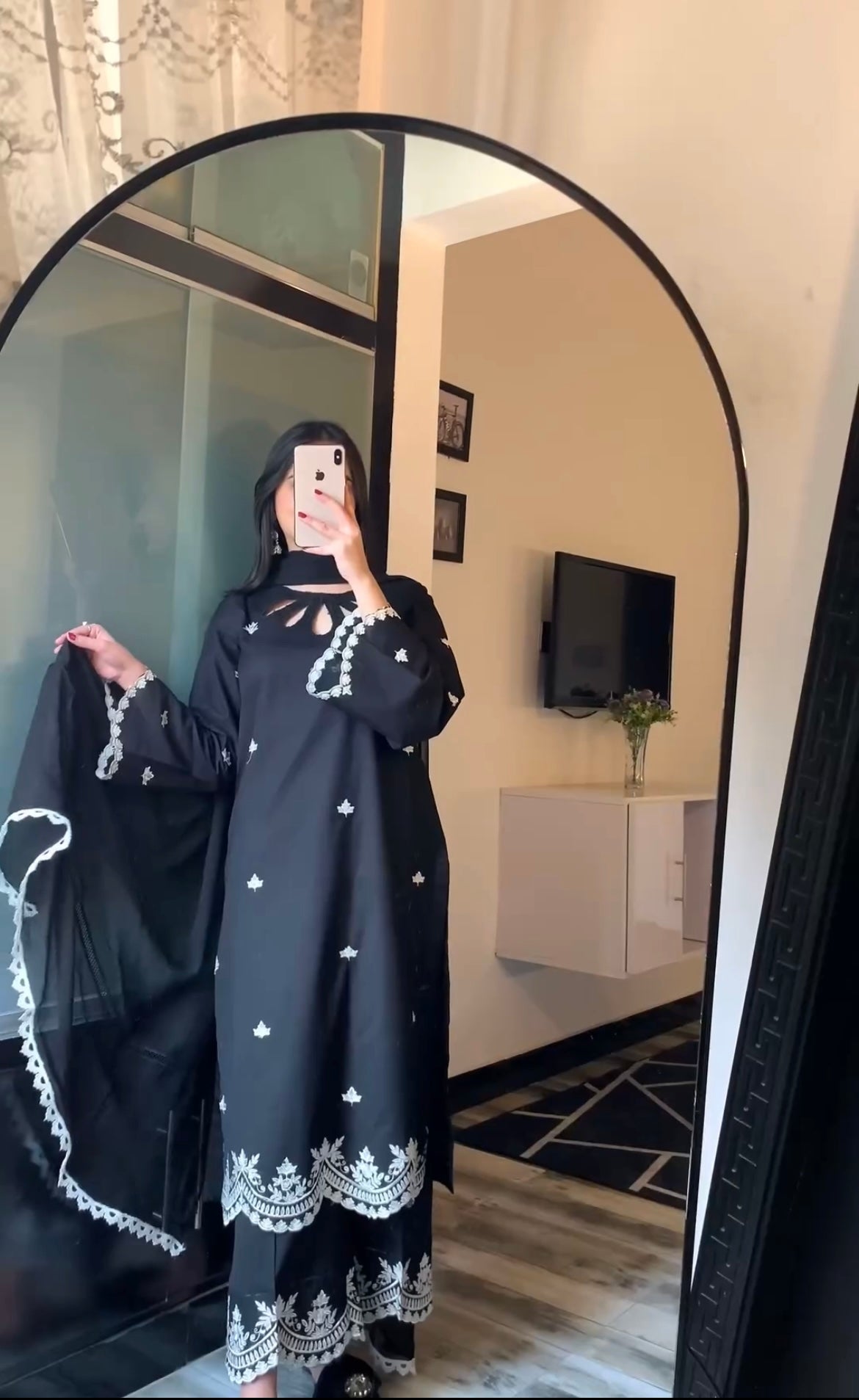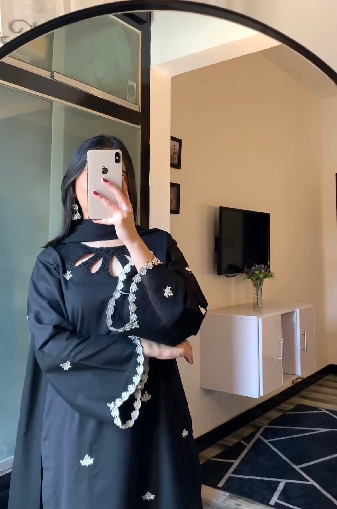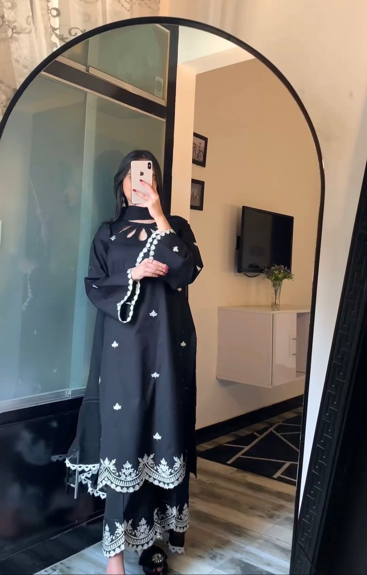 A very beautiful crafted lawn 3pcs fully embroidery and chiffon 4 sided lace work giving a decent look with egg neck💜
