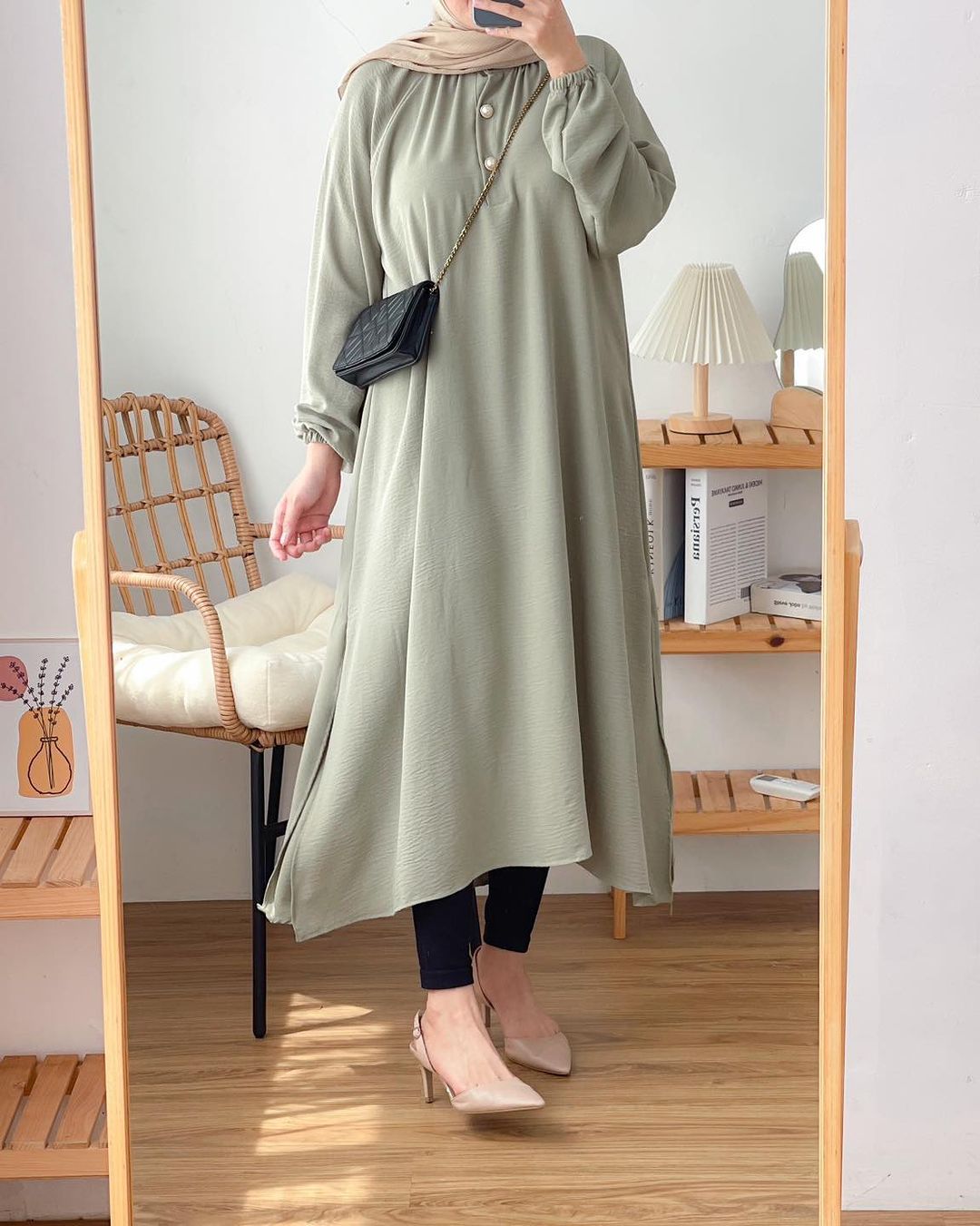 A Knee lenght 46" inches gerogette open chak abaya type with loose fitting for your daily routine in mid season order yours stitched in sizes small medium large Xlarge ❤️💜