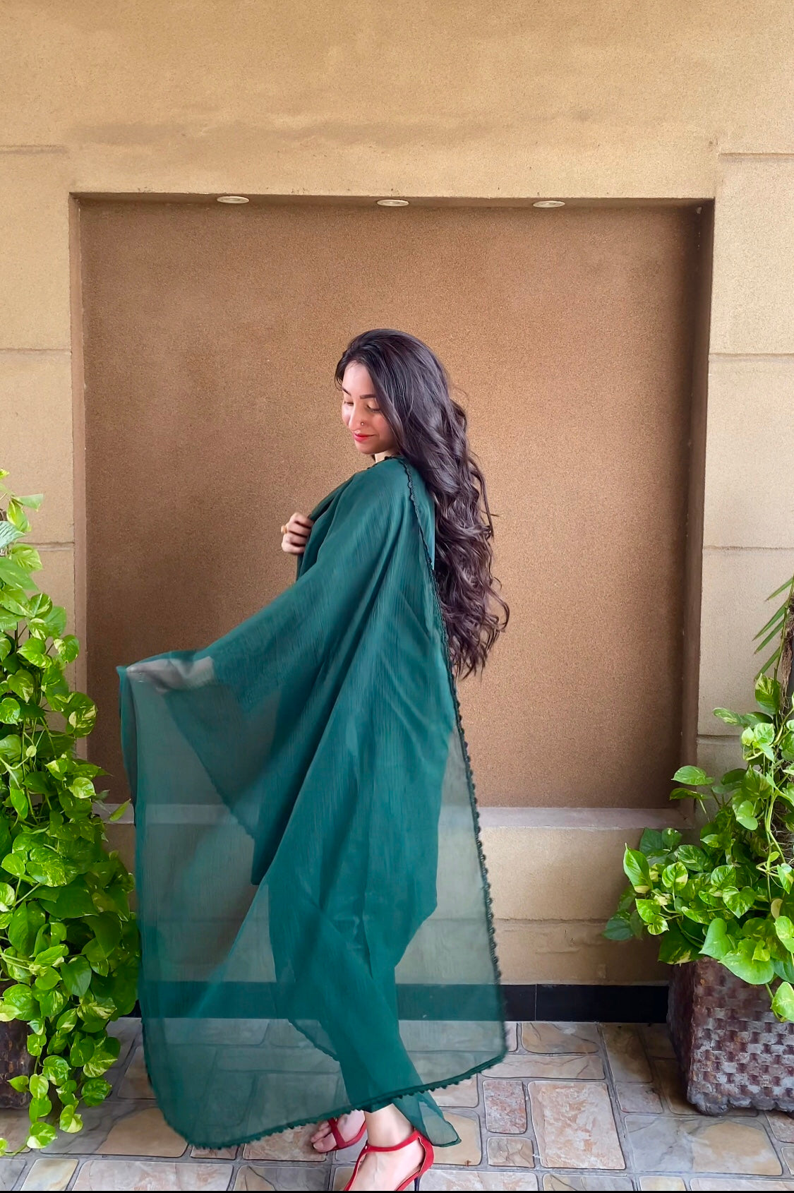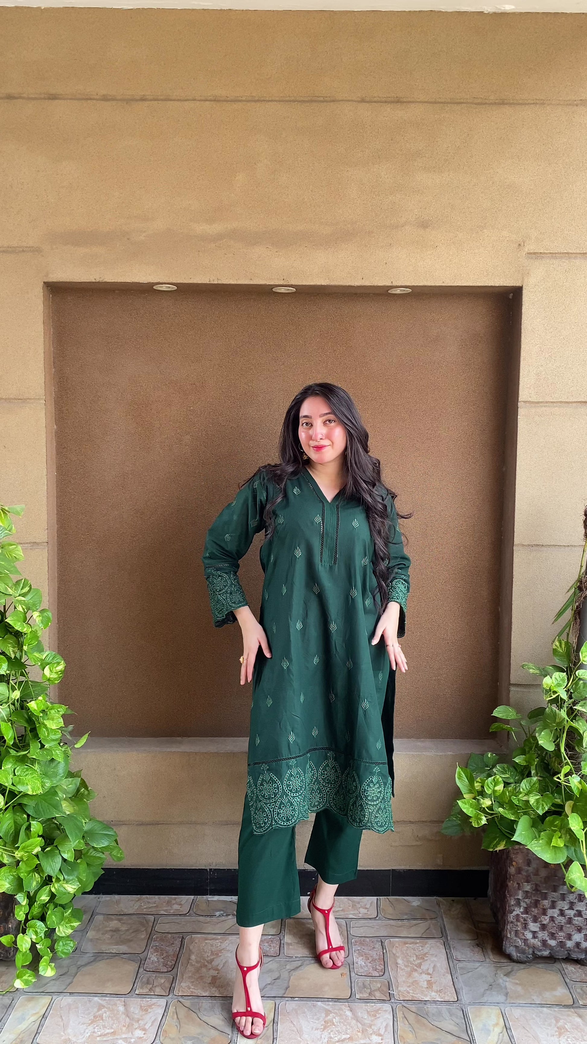 Greeny 3pcs! The lawn fabric will be so light and airy, perfect for a warm day, and the chiffon lace dupatta adds a touch of elegance. I bet it’s super comfortable too.