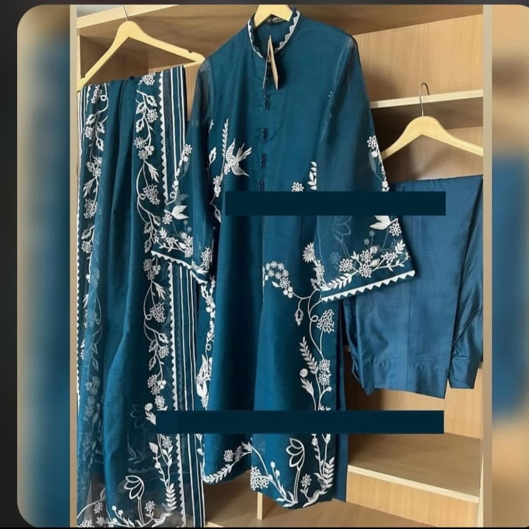 A pure krandi net fully embroidery stitched 3 piece giving a wedding look for your close ones