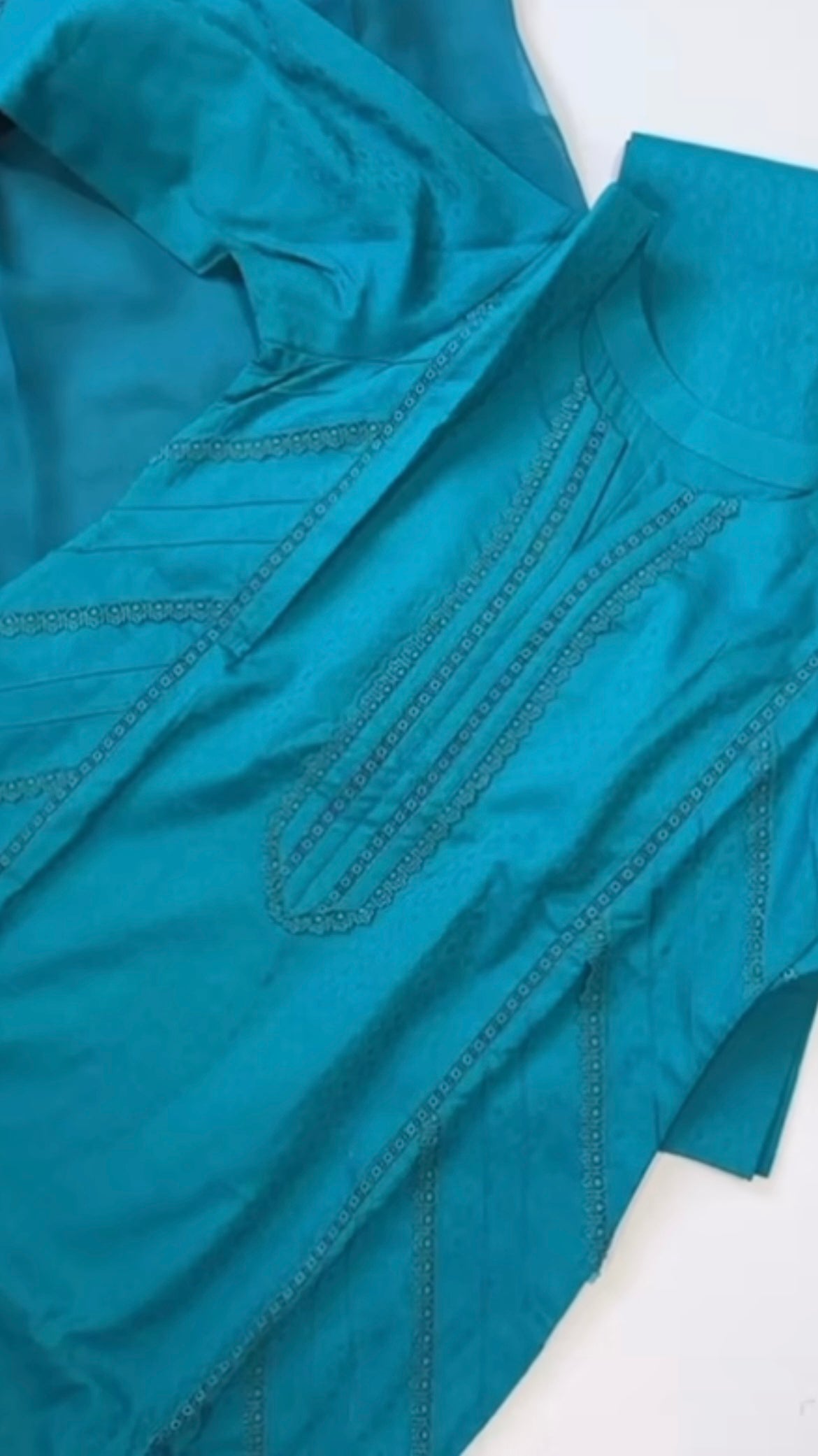 "Elegant ethnic kurta available in mustard and zinc colors, featuring intricate lace work detailing."