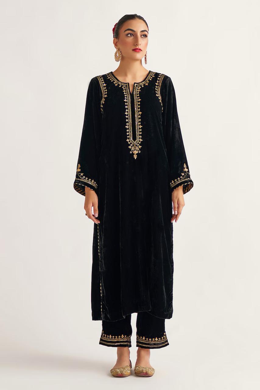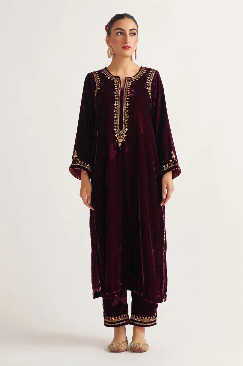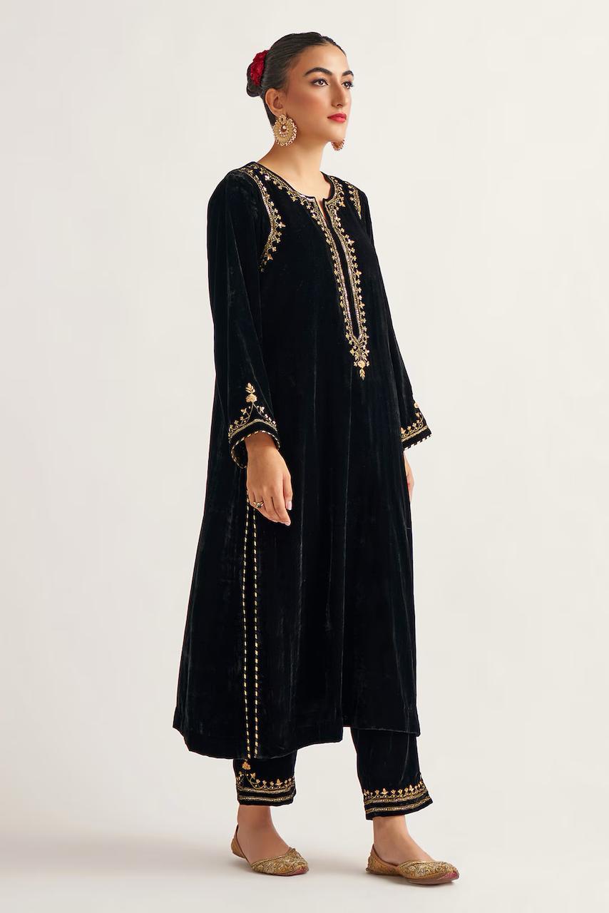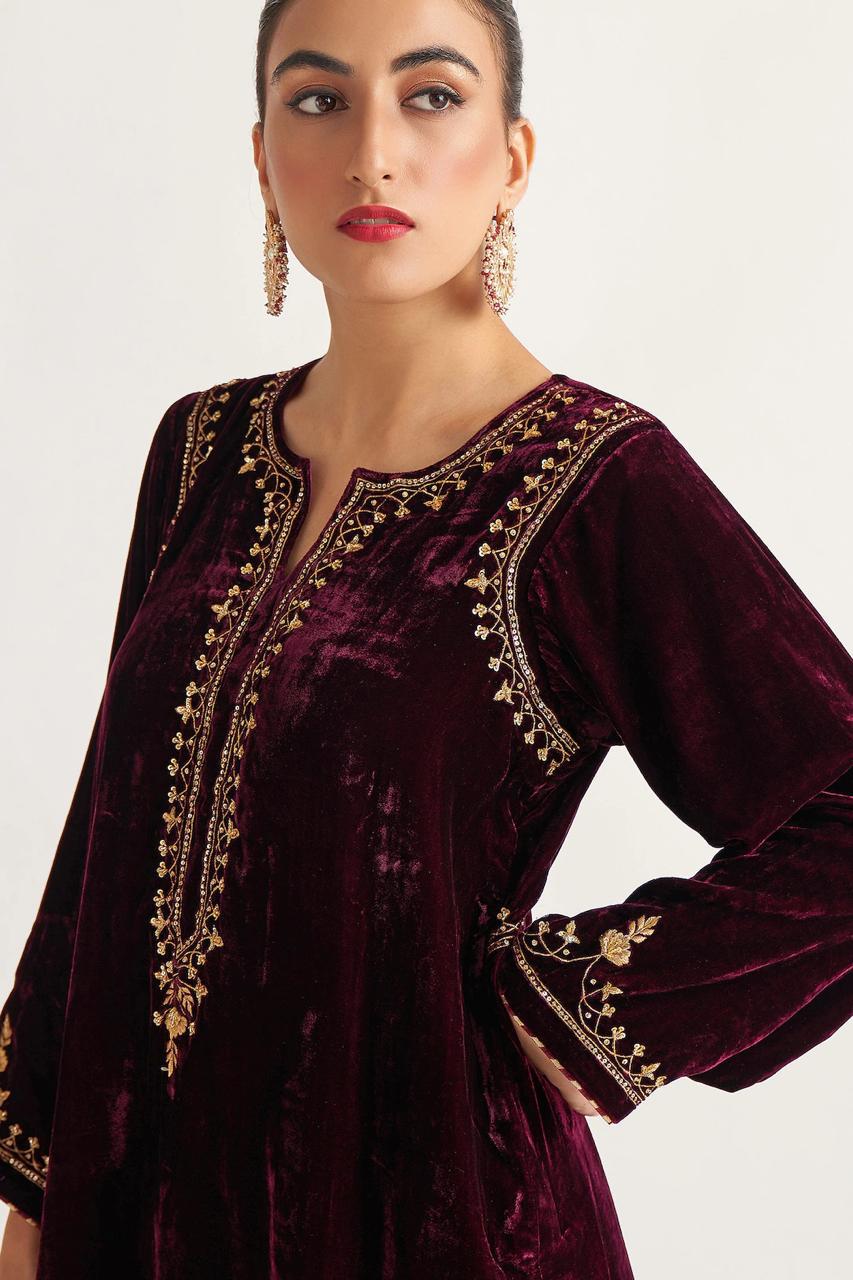 Velvet embroidery 2pcs crafted with side pocket design crafted in 5000 micro velvet