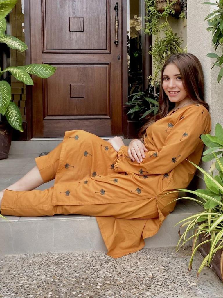 Product Detail:- A very summer friendly casual wear 2pcs ready to wear with tree embroidery.