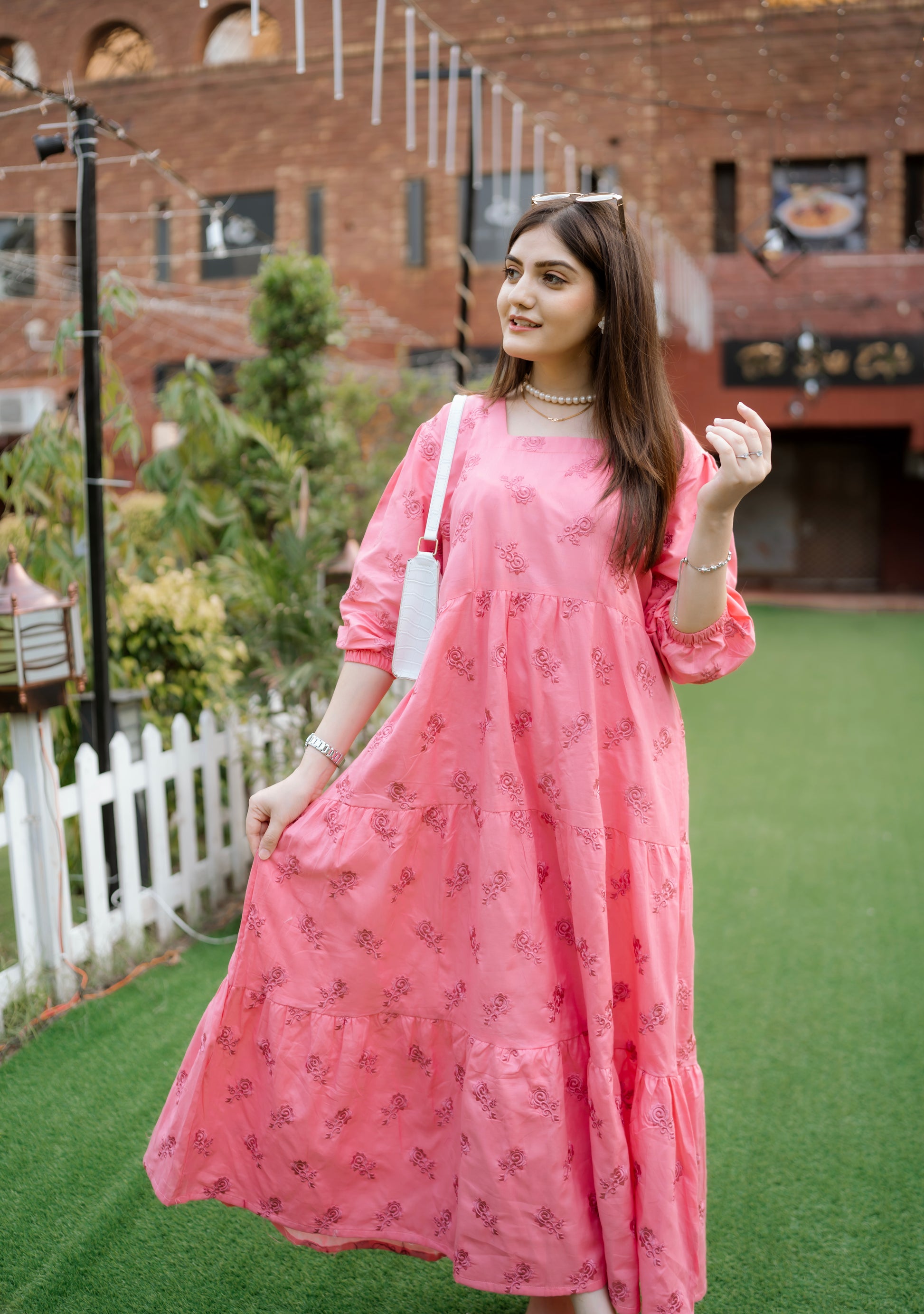 A very beautiful lawn embroidery frock with panel work and good flared for decent look