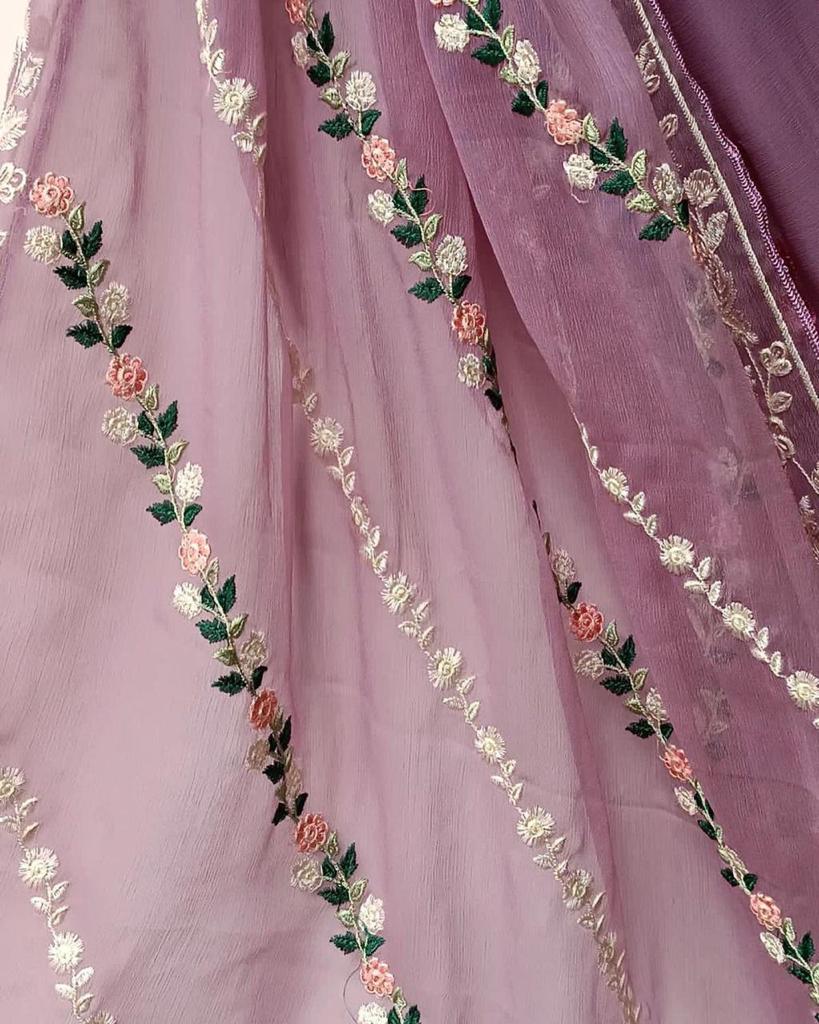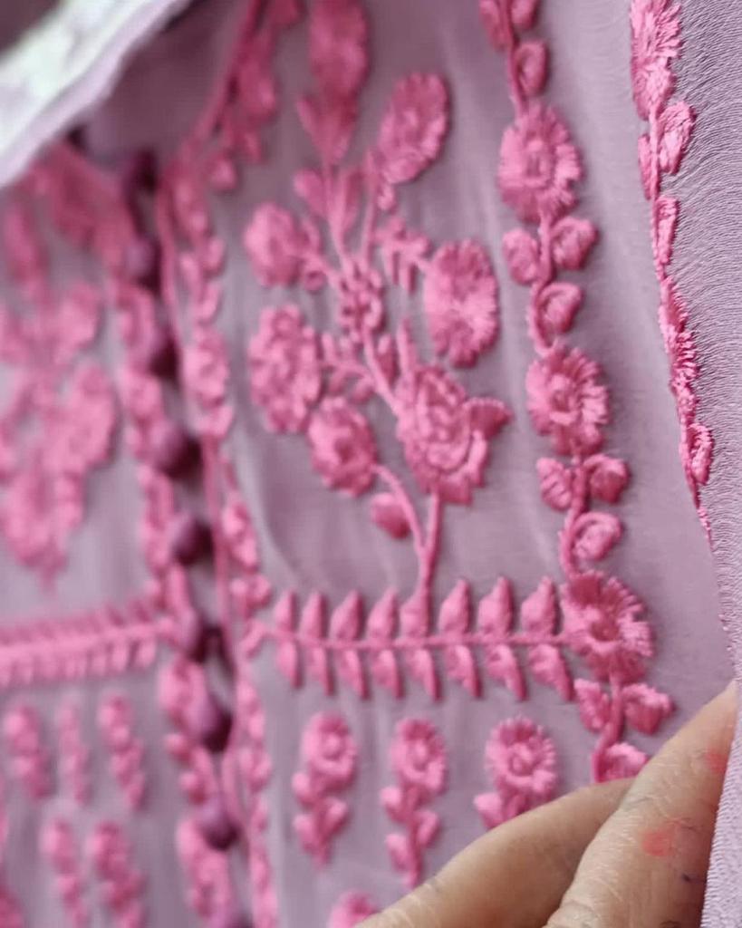 Product Details:-A pure chiffon embroidery three piece stitched in sizes small medium large xl and have a loaded embroidery which making its wedding collection 😍