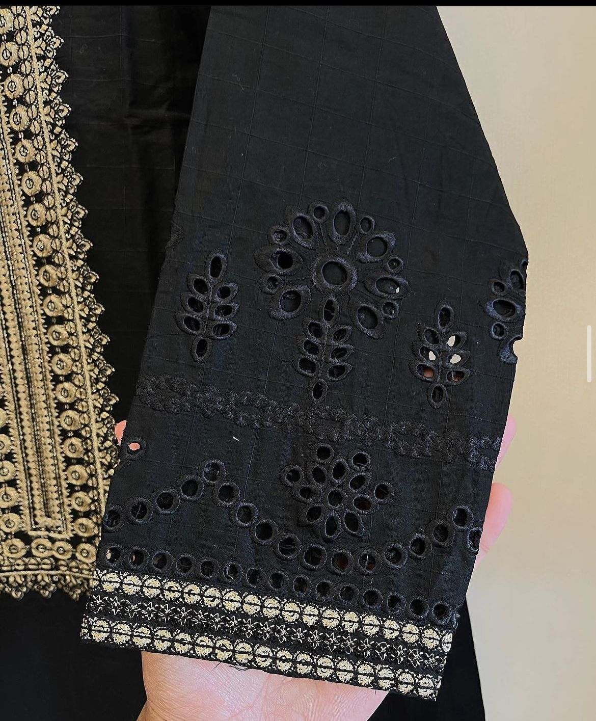 Product Details:- A very decent embroidery 2pcs with 3mm neck line and chikenkari embroidery on sleeve making a good and decent look