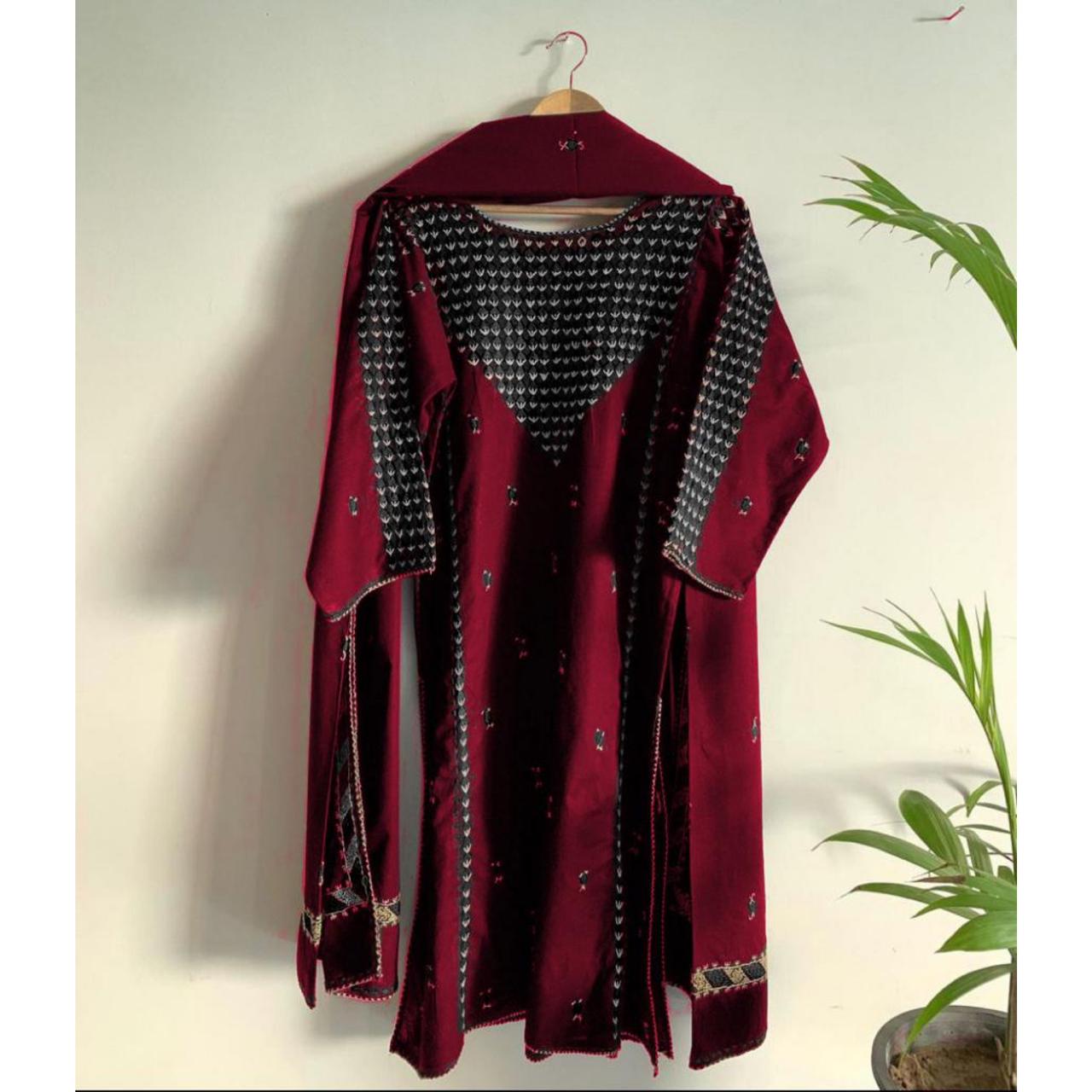 Product Details:- Three piece fully embroidery stitched with panel embroidery shirt , dupatta with boti and two sides borders given a formal look.