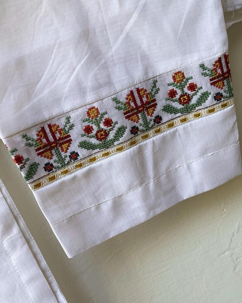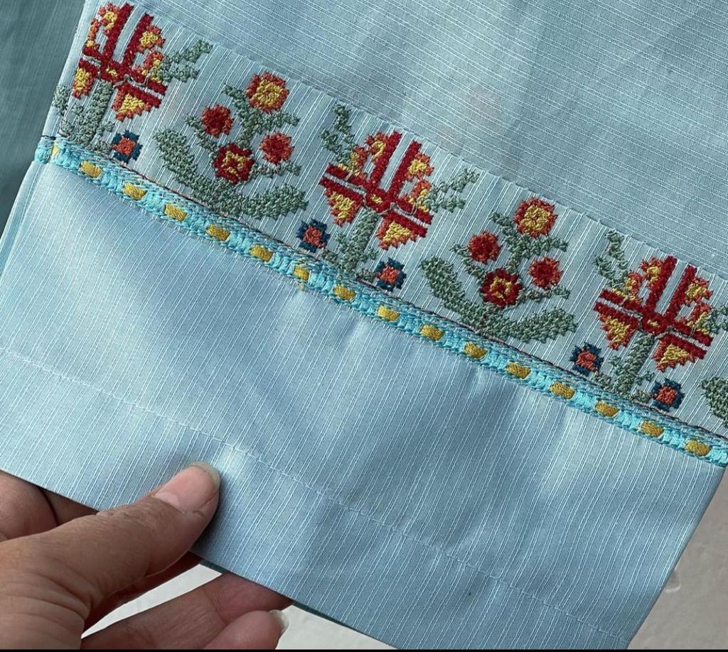 Product Details:- A very beautifully 3pcs stitched suit with cross stitch all over suit giving a elegant look.