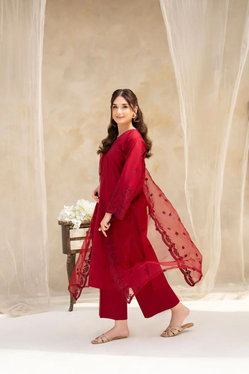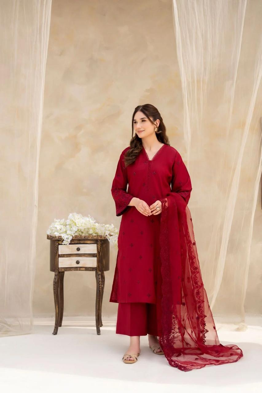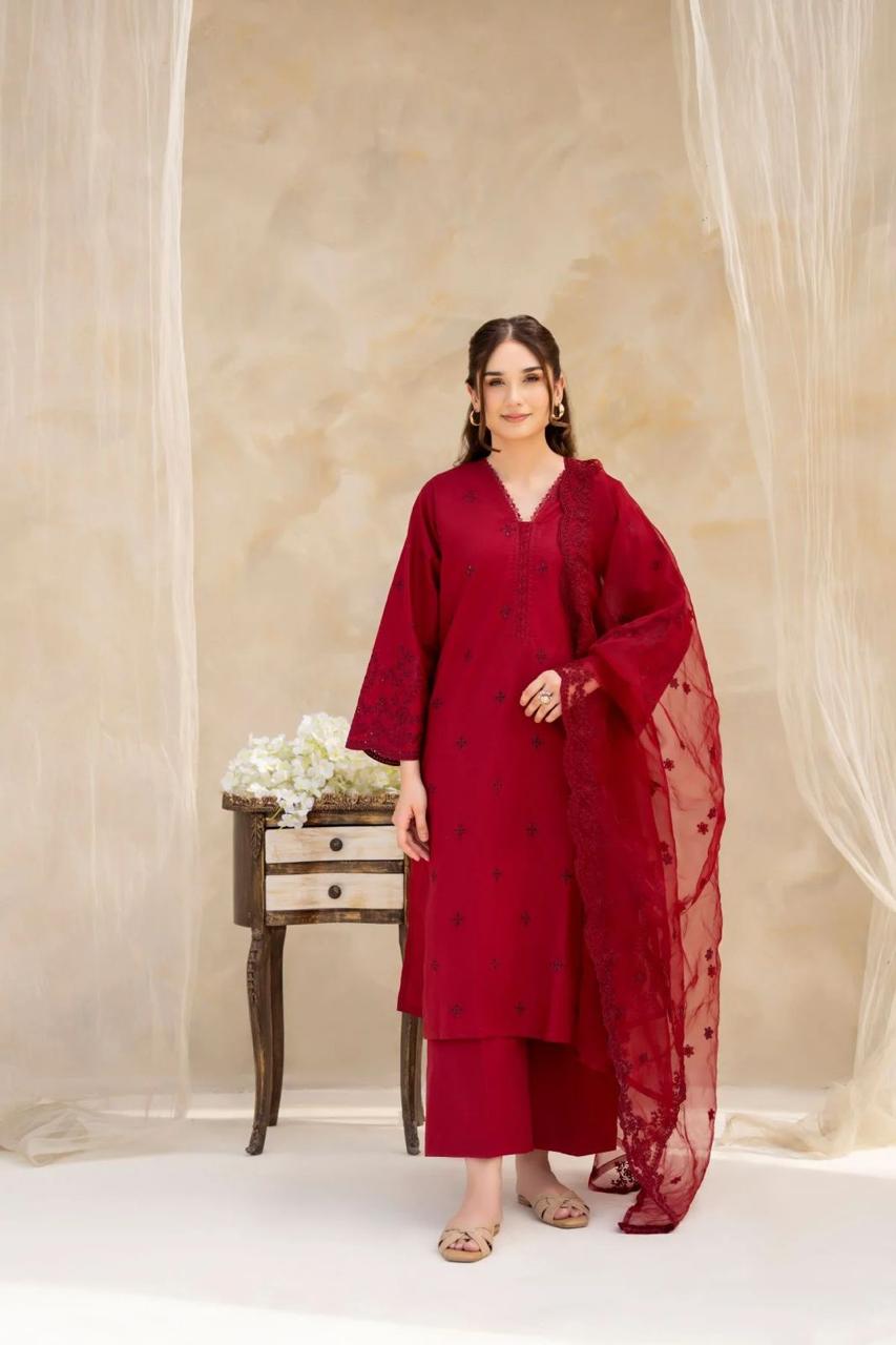 A purely crafted in lawn with organza duppta with chickenkari embroidery giving a traditional look